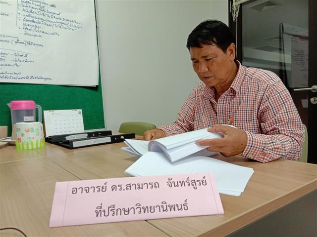 อาจารย์ ดร.สามารถ จันทร์สูรย์ คณบดีคณะศิลปศาสตร์และอาจารย์ที่ปรึกษาวิทยานิพนธ์ ได้ให้คำแนะนำในการพัฒนางานวิทยานิพนธ์ ๕ บท โดยปฏิบัติตามคู่มือการสอบประมวลความรู้และการทำวิทยานิพนธ์ ของบัณฑิตศึกษา สถาบันการเรียนรู้เพื่อปวงชน ฉบับสมบูรณ์ (๒๓ มิถุนายน ๒๕๕๘)